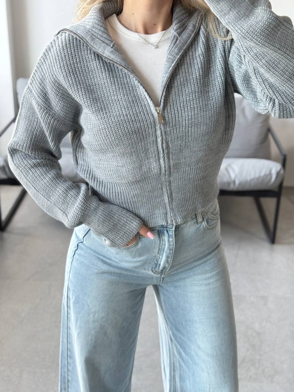 Вкорочений светр на блискавці