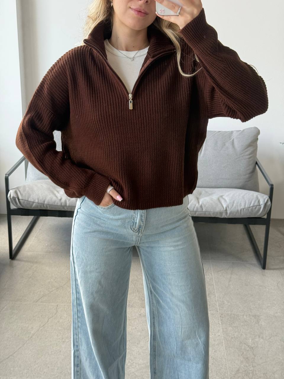 Светр з блискавкою на горловині